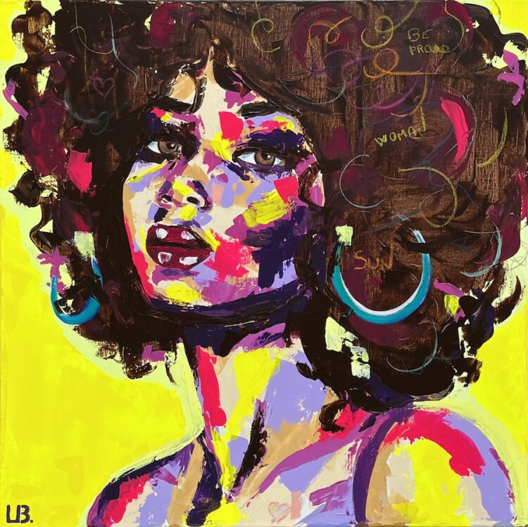 Des premières œuvres aux accents plus pop jusqu’aux créations plus récentes mêlant acrylique, dorure et textures brutes, chaque tableau marque une étape, une recherche, un nouvel élan.