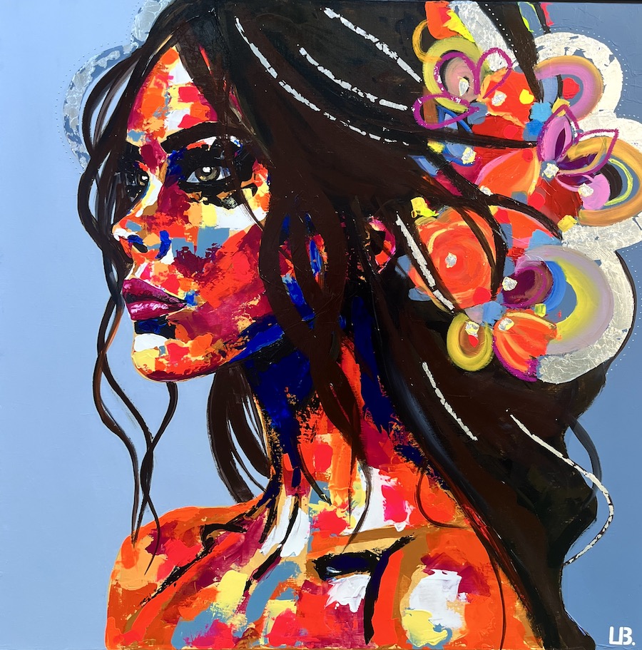 ✨ Pourquoi Aurora retient l’attention ? Son regard se détache de profil, intense et habité. Il ne s’impose pas par la force, mais par la profondeur. Les couleurs sont franches, instinctives, posées par touches vibrantes. Les contrastes — entre oranges incandescents, bleus profonds et accents lumineux — créent un mouvement intérieur, presque organique. Rien n’est figé. Tout circule. La figure incarne une féminité libre, solaire, ancrée. Une énergie vivante, expressive, sans artifice. Les motifs floraux et les lignes gestuelles prolongent le visage et ouvrent l’espace, renforçant la dimension expressive de l’œuvre sans jamais détourner le regard de l’essentiel. Aurora attire naturellement l’œil et l’entraîne, comme un élan.